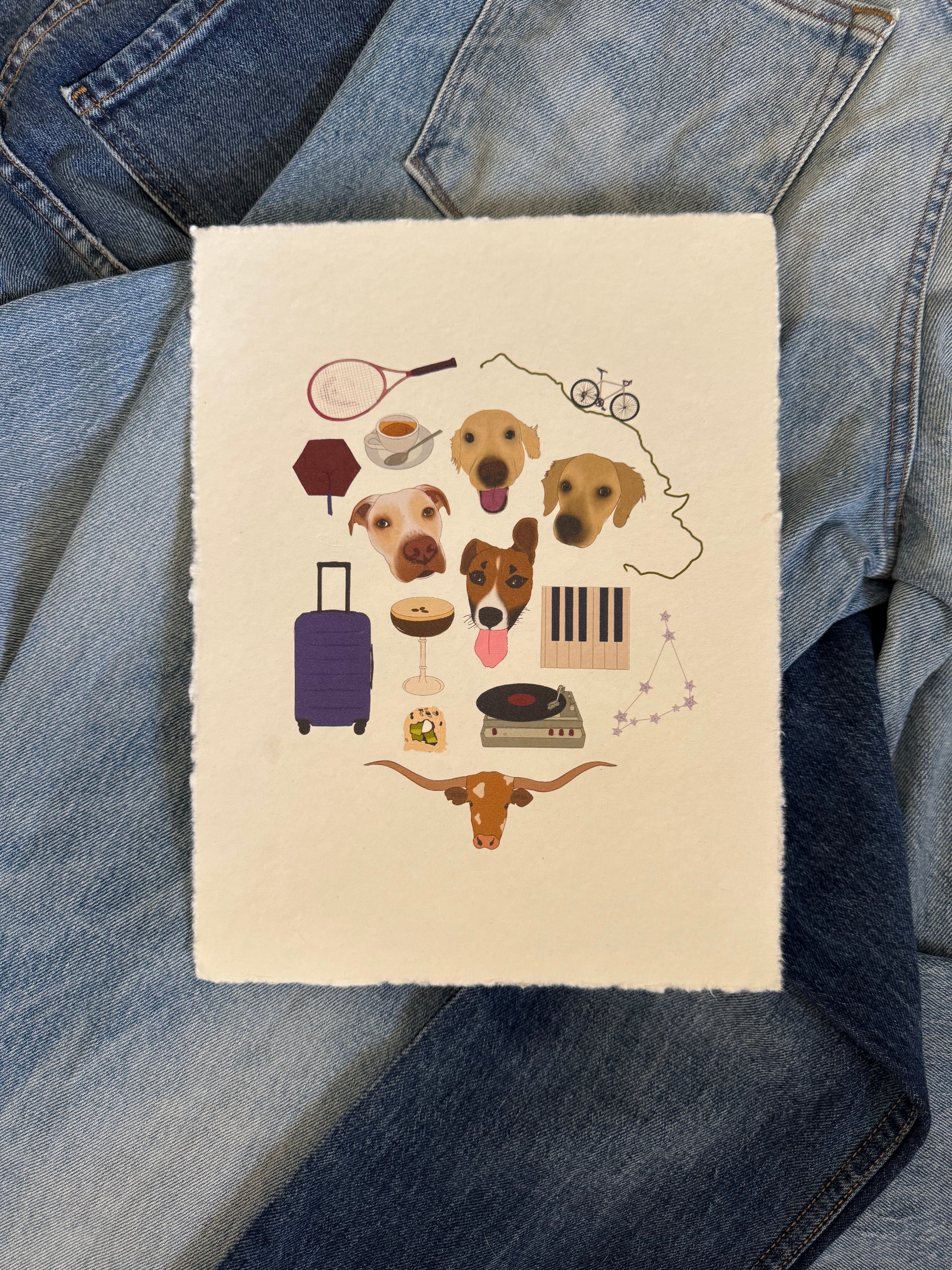 So if you’re looking for art that means something, look no further. Each icon is hand drawn using a cohesive color palette, then they are put together and printed onto an 8.5x11 handmade-style paper.
